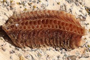 Dio la casualidad que unos días más tarde en las inmediaciones de ese lugar, me llamó la atención un abultamiento sobre una pared. Al acercarme a ver qué era pude comprobar que se trataba de un viejo nido en el que ponen sus huevos. No puedo afirmar que corresponda a esta especie, pero sirve como ejemplo para hacernos una idea.