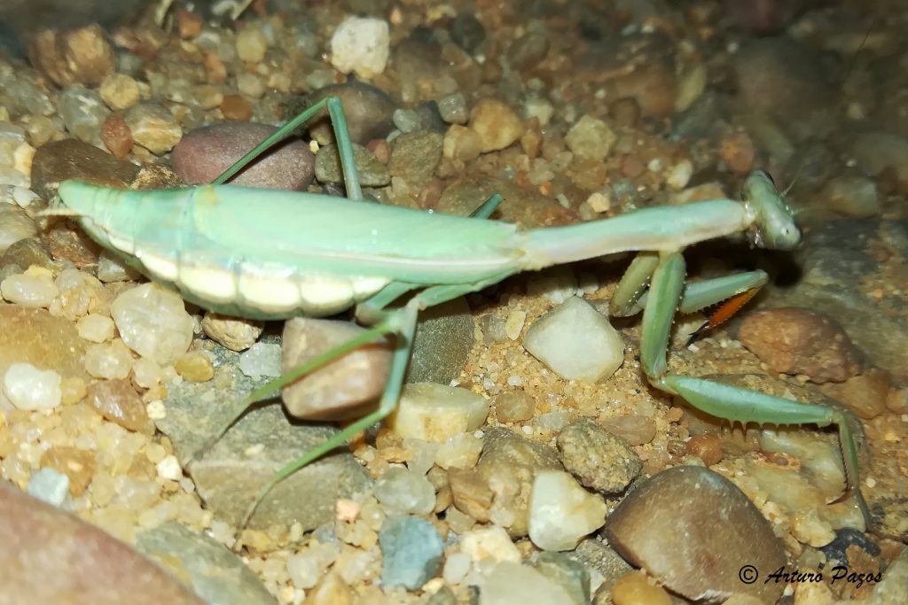 Mi encuentro con este insecto tuvo lugar a finales del pasado mes de septiembre, cuando ya anochecido dando un paseo con mi ayudante perruno Kuma, la encontramos caminando por un camino de tierra.